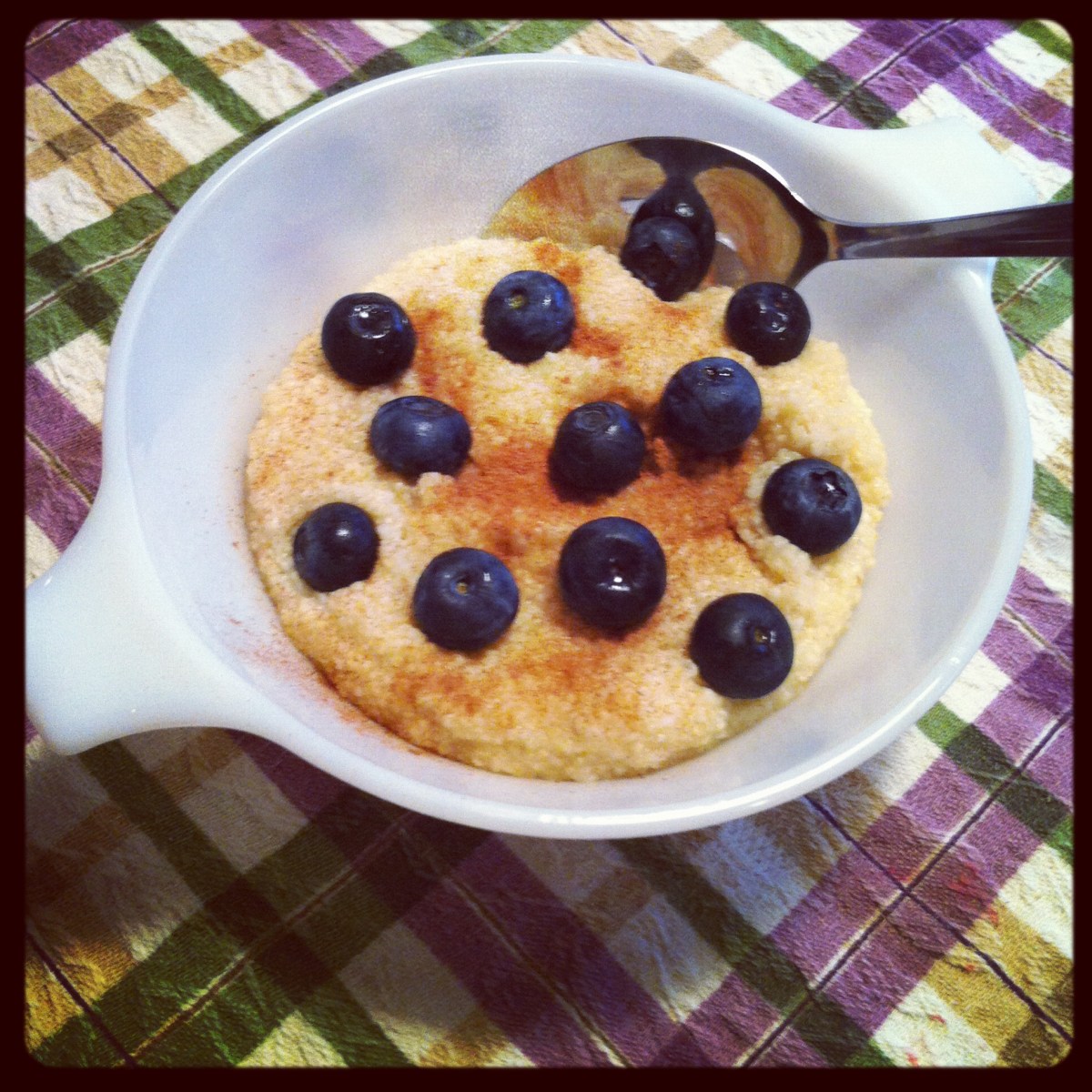 Hot brown rice cereal with blueberries