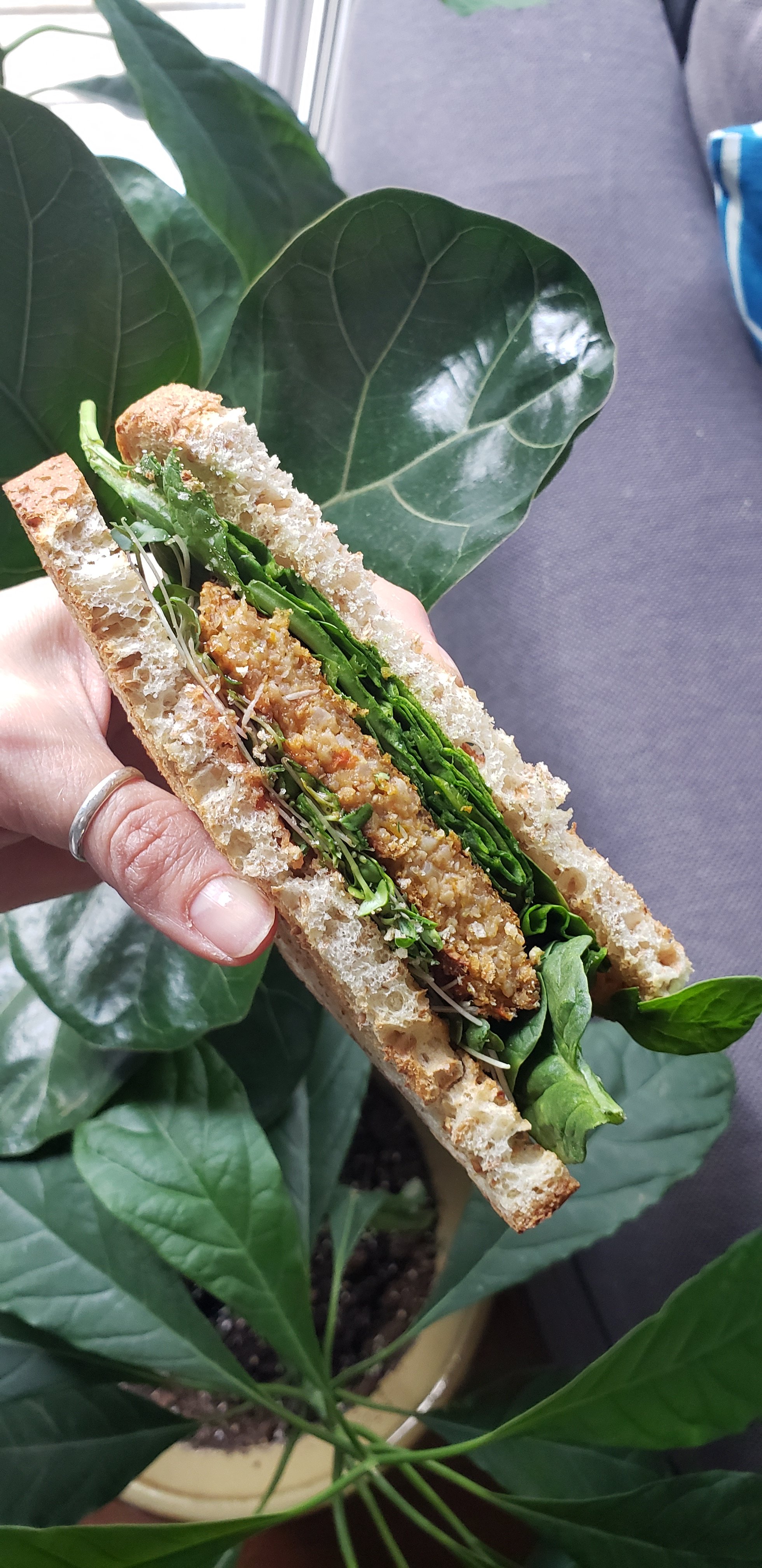 I enjoy my burgers with Spinach and sprouts on sprouted bread.